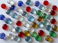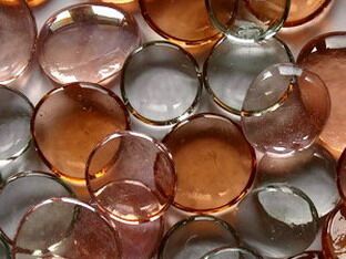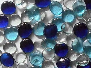 Glass pebbles, also referred to as glass nuggets, are machine-made, flat glass beads in various colours and three different sizes. The curved, polished surface of glass pebbles causes fascinating light refractions. Incident light makes our glass pebbles sparkle and shine, they are thus best suited for applications with light.