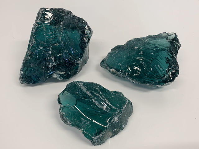 We offer glass rocks | glass chunks in multiple sizes varying from 40 mm to 400 mm. Each glass rock can vary in weight depending on its size. Our XXXL size glass rock can weigh up to 200 kgs for a single piece. Our most popular color is Turquoise.